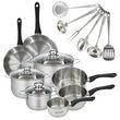 Set 2 poêles 20 24 cm 3 casseroles 12 16 20 cm, 3 faitouts 16, 20 et 24 cm en inox et 6 ustensiles inox Fackelmann Geneva
