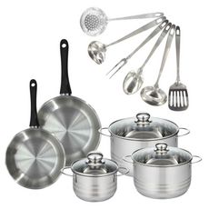 - DESCRIPTION: Set Fackelmann Geneva de 2 poêles de 20 cm et 24 cm en inox 18/8, 3 faitouts inox de 16 cm, 20 cm et 24 cm et 6 ustensiles