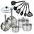 - COMPOSITION: Poêles acier inoxydable 18/8, couvercles verre, faitouts en inox de haute qualité pour une cuisine saine, ustensiles en plastique recyclé