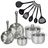 - DESCRIPTION: Batterie de cuisine sans PFAS Fackelmann Eterna avec 2 poêles à frire en inox 18/8 de 20 et 24 cm, 3 faitouts de 16, 20 et 24 cm, et 6 ustensiles en RPET noir