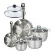 Set 2 poêles 20 28 cm en inox et 2 couvercles verre, 3 faitouts inox 16, 20 et 24 cm Fackelmann Eterna