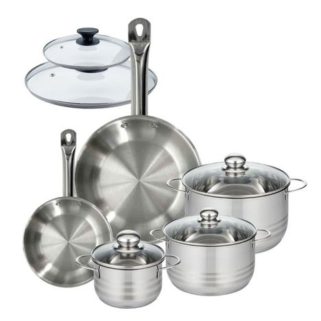 - DESCRIPTION: Set de cuisson Fackelmann Eterna de 2 poêles à frire en inox 18/8 de 20 et 28 cm et leurs couvercles en verre, et 3 faitouts de 16, 20 et 24 cm