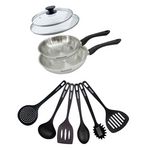 Set 2 poêles 20 et 24 cm en inox, couvercles verre et 6 ustensiles Fackelmann Geneva