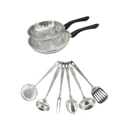 Set 2 poêles 20 et 24 cm en inox et 6 ustensiles inox Fackelmann Geneva