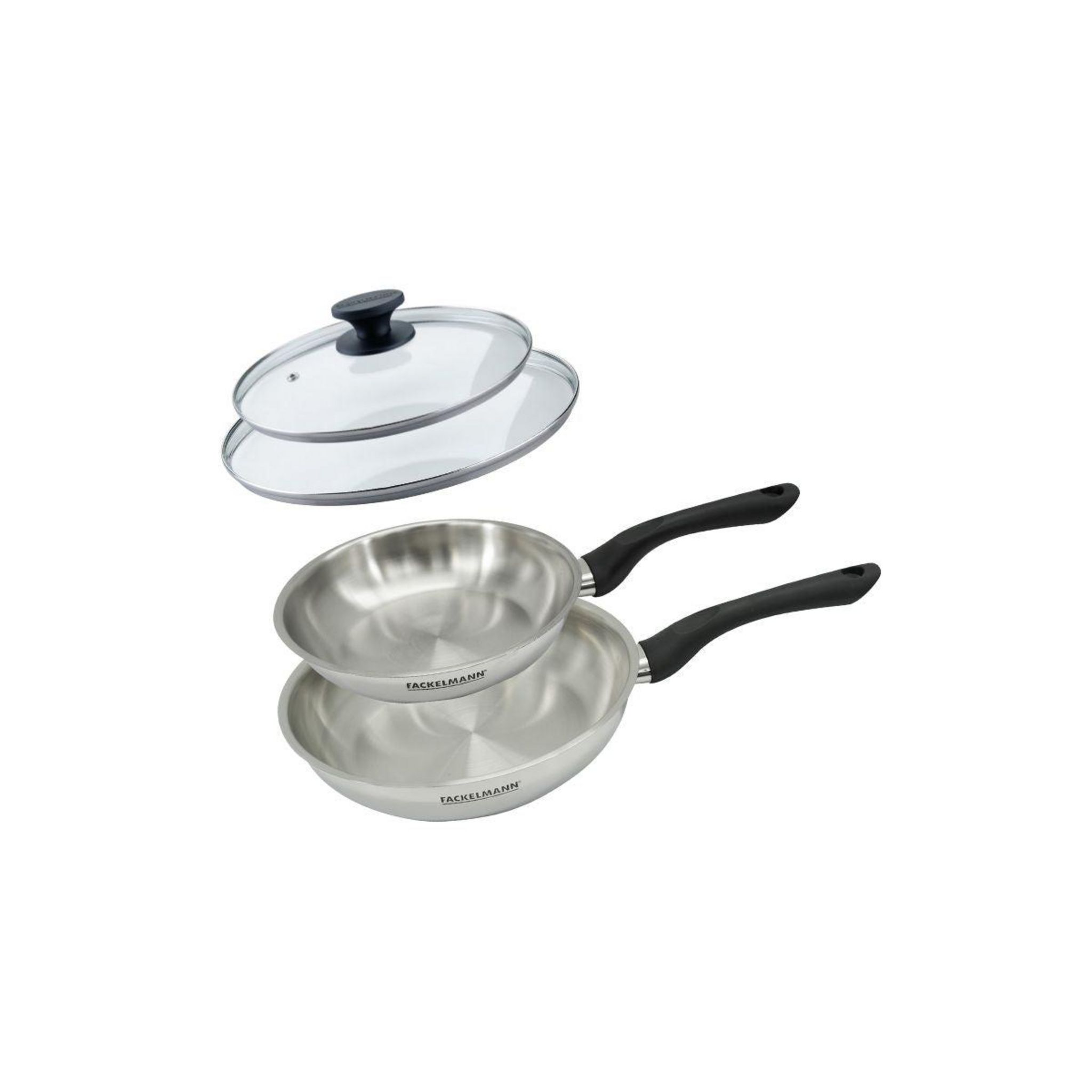 - DESCRIPTION: Set Fackelmann Geneva de poêles de 20 cm et 24 cm en inox 18/8 et leurs couvercles en verre , idéal pour 1 à 3 personnes