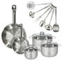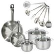 Set 2 poêles 20 et 28 cm en inox, 3 faitouts inox 16, 20 et 24 cm et 6 ustensiles inox Fackelmann Eterna
