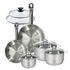 Set 2 poêles 24 28 cm en inox et 2 couvercles verre, 3 faitouts inox 16, 20 et 24 cm Fackelmann Eterna
