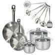 Set 2 poêles 24 et 28 cm en inox, 3 faitouts inox 16, 20 et 24 cm et 6 ustensiles inox Fackelmann Eterna