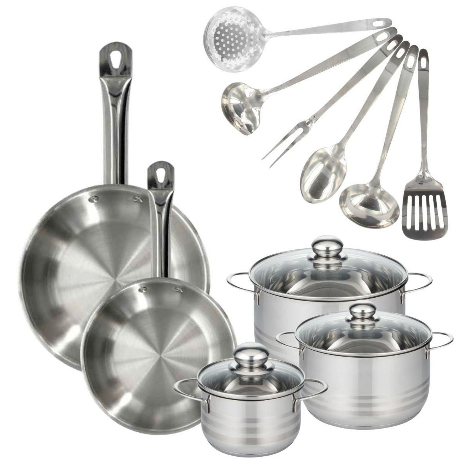 - COMPOSITION: Poêle en acier inoxydable 18/8, faitouts et ustensiles en inox de haute qualité, tous résistants à des températures élevées