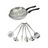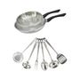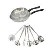 S'y ajoutent 6 ustensiles de cuisson et de service robustes, en acier inoxydable : louche, louche ovale, cuillère de service, écumoire, fourchette à viande, pelle de service robustes. Lavage à la main recommandé.
