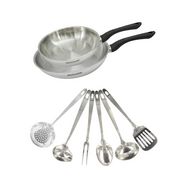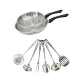 Set 2 poêles 24 et 28 cm en inox et 6 ustensiles inox Fackelmann Geneva