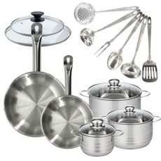- COMPOSITION: Poêles en acier inoxydable 18/8, faitouts et ustensiles en inox de haute qualité, tous résistants à des températures élevées
