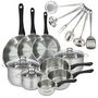 Set 3 poêles 20 24 28 cm 3 casseroles 12 16 20 cm, 3 faitouts 16, 20 et 24 cm en inox et 6 ustensiles inox Fackelmann Geneva