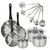 Ajoutez à cela 6 ustensiles de cuisson et de service robustes, en acier inoxydable : louche, louche ovale, cuillère de service, écumoire, fourchette à viande, pelle de service robustes.