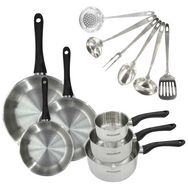 Set 3 poêles 20 24 et 28 cm, 3 casseroles en inox et 6 ustensiles inox Fackelmann Geneva