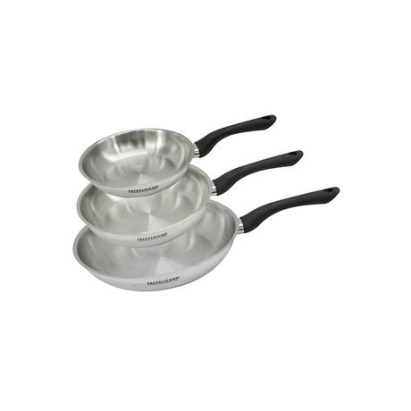 - DESCRIPTION: Batterie de cuisine de 3 poêles Fackelmann Geneva en acier inoxydable 18/8, parfaites pour tous vos besoins culinaires