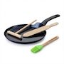 - DIMENSIONS : Poêle 26 cm de diamètre, pinceau 26 x 2,8 cm, spatule 33,5 x 4,4, râteau 20 x 12 cm