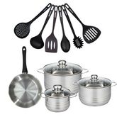 Set de 1 poêle 20 cm en inox, 3 faitouts 16, 20 et 24 cm et 6 ustensiles RPET Fackelmann Geneva