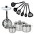 - DESCRIPTION: Set Fackelmann Geneva inox avec 1 poêle 20 cm et son couvercle, 3 faitouts inox de 16, 20 et 24 cm, et 6 ustensiles de cuisine en RPET noir