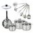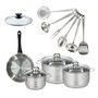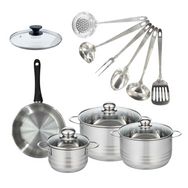 Set de 1 poêle 20 cm inox, couvercle verre, 3 faitouts inox 16, 20 et 24 cm et 6 ustensiles inox Fackelmann Geneva