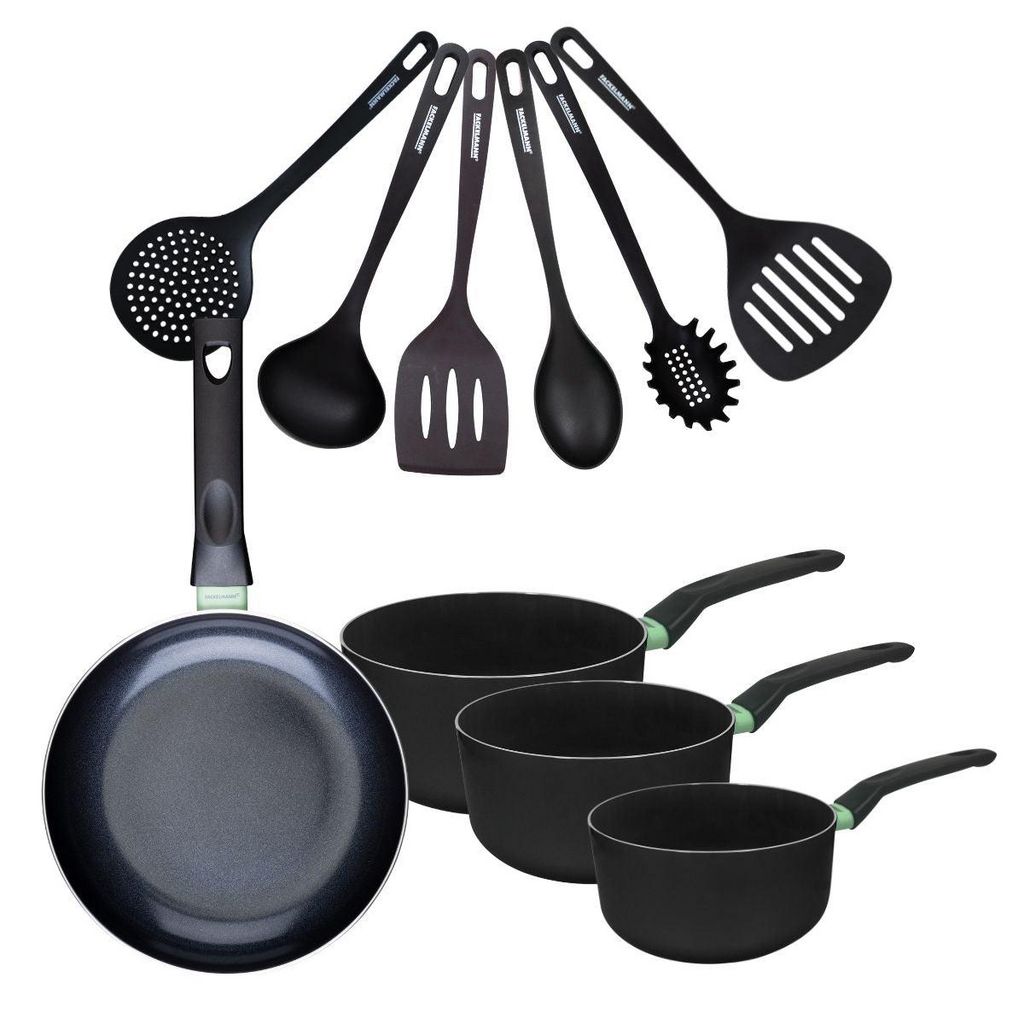 Set de 1 poêle 24 cm, 3 casseroles antiadhésives céramique 16, 18 et 20 cm et 6 ustensiles Fackelmann Brandao