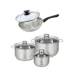 Set de 1 poêle 24 cm en inox et couvercle, 3 faitouts inox 16, 20 et 24 cm Fackelmann Geneva