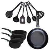 Set de 1 poêle 28 cm, 3 casseroles antiadhésives céramique 16, 18 et 20 cm et 6 ustensiles Fackelmann Brandao
