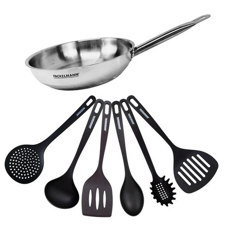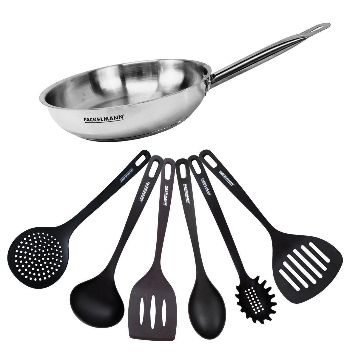 Set de 1 poêle 28 cm en inox et 6 ustensiles Fackelmann Eterna