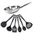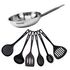 Les 6 ustensiles de cuisine Fenix en plastique recyclé noir sont conçus pour résister à des températures élevées allant jusqu'à 210°C : louche, pelle à servir, cuillère à servir, pelle ajourée, écumoire et cuillère à spaghetti.