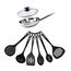 Pratique avec 6 ustensiles résistants à des températures élevées allant jusqu'à 210°C, compatibles avec le lave-vaisselle et conçus pour durer (louche, 2 pelles, cuillère, écumoire et cuillère à spaghetti en plastique recyclé noir).
