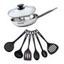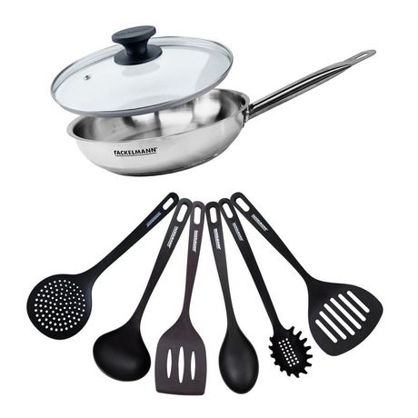 Set de 1 poêle de 28 cm en inox 1 couvercle en verre et 6 ustensiles Fackelmann Eterna