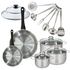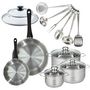 Set de 2 poêles 20, 28 cm inox, couvercles verre, 3 faitouts inox 16, 20 et 24 cm et 6 ustensiles inox Fackelmann Geneva
