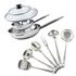 Set de 2 poêles 20 et 28 cm en inox, 2 couvercles verre et 6 ustensiles inox Fackelmann Eterna