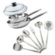 Set de 2 poêles 24 et 28 cm en inox, 2 couvercles verre et 6 ustensiles inox Fackelmann Eterna