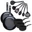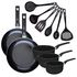 - DESCRIPTION: Batterie Fackelmann Brandao avec 2 poêles 28 et 30 cm, 3 casseroles de 16 à 20 cm en aluminium recyclé avec revêtement céramique antiadhésif, et 6 ustensiles en RPET noir