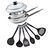 Avec 6 ustensiles résistants à des températures allant jusqu'à 210°C, compatibles avec le lave-vaisselle (louche, 2 pelles, cuillère, écumoire et cuillère à spaghetti en plastique recyclé noir). Couvercles à laver à la main.