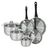 Set de 3 poêles 20, 24 et 28 cm en inox et 3 faitouts inox 16, 20 et 24 cm Fackelmann Geneva