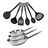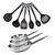 Pratique avec 6 ustensiles résistants à des températures élevées allant jusqu'à 210°C, compatibles avec le lave-vaisselle et conçus pour durer (louche, 2 pelles, cuillère, écumoire et cuillère à spaghetti en plastique recyclé noir).