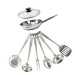 Set poêle 20 cm en inox, couvercle verre et 6 ustensiles inox Fackelmann Eterna