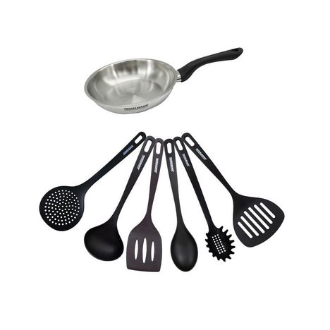- DESCRIPTION: Set Fackelmann Geneva 1 poêle 20 cm en inox 18/8 et des ustensiles en RPET noir