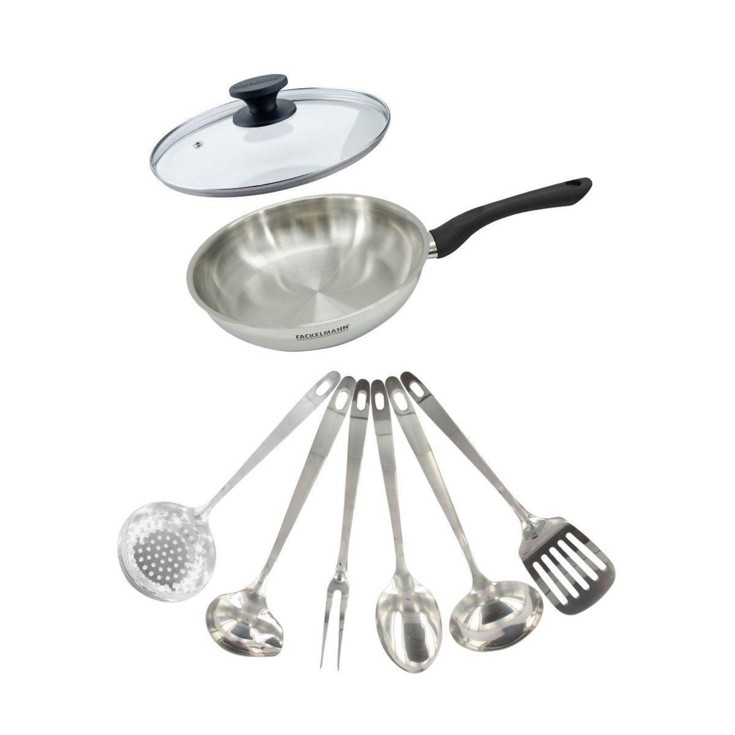 - DESCRIPTION: Ce set Fackelmann Geneva allie des produits essentiels et de haute qualité avec poêle 24 cm en inox 18/8, couvercle et 6 ustensiles de cuisson et de service en inox