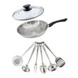 Set poêle 28 cm en inox, couvercle verre et 6 ustensiles inox Fackelmann Geneva