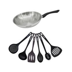 Set poêle 28 cm en inox et 6 ustensiles Fackelmann Geneva