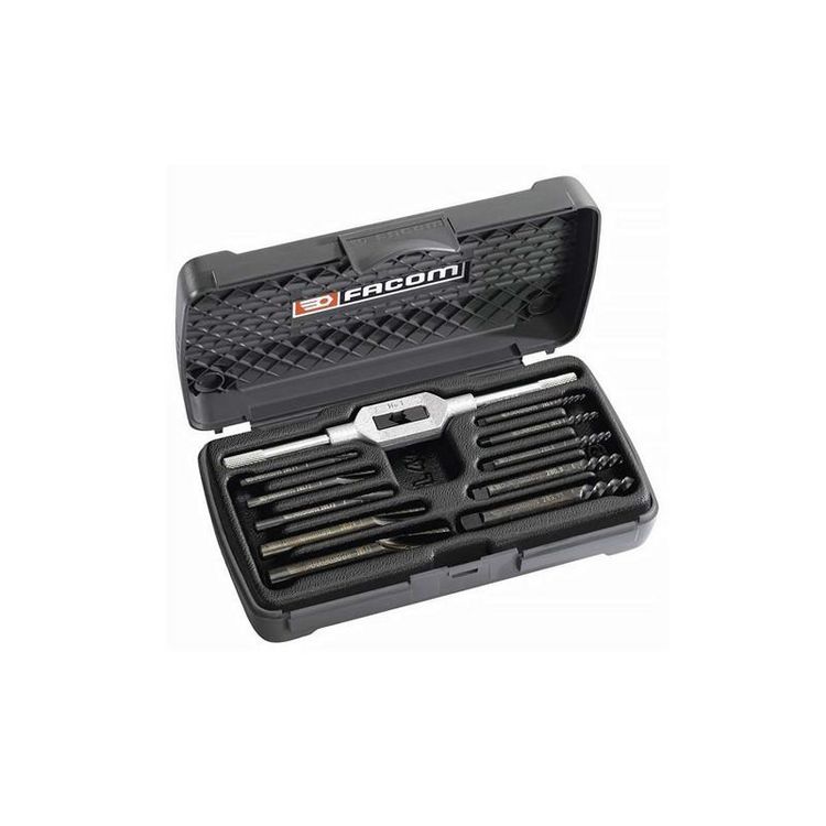 Ce coffret plastique BP.102 de la marque Facom est composé de 5 extracteurs de goujons, 5 forets conique adaptés et une tourne à gauche.
