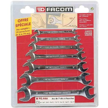 Clés plus maniables grâce aux têtes effilées. Effet de levier par son manche allongé.Caractéristiques techniques : Jeu de 7 clés : 6 x 7 - 8 x 9 - 10 x 11 - 12 x 13 - 14 x 15 - 16 x 17 - 18 x 19.Jeu de 9 clés : 3,2 x 5,5 - 4 x 5 - 6 x 7 - 8 x 9 - 10 x 11 - 12 x 13 - 14 x 15 - 16 x 17 - 18 x 19.C