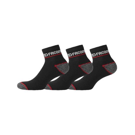 Facom vous propose un tout nouveau lot de chaussettes de travail pour homme ! La marque vous propose des chaussettes basse confortables. Les élastiques vous garantissent un bon maintien pour garder vos chaussettes dans la bonne position. C'est le moment ou jamais de choisir ses chaussettes de haute qualité anti frottement et anti transpiration ! Ces chaussettes spéciales chaussures de sécurité vous suivront confortablement toute la journée.