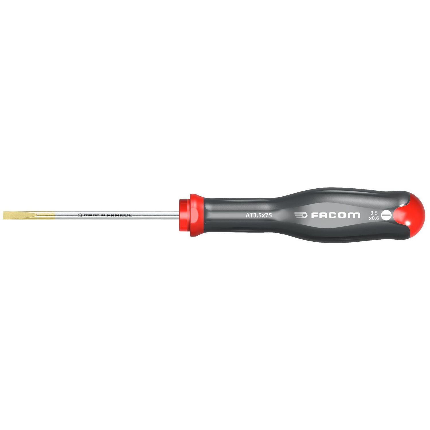 Tournevis lame chromée brillante empreinte sablée lame fraiséeMarque du produit: FACOMEmpreinte du tournevis: 3.5Largeur de la lame (en mm): 3.5Embout magnétique: NonMatière de la poignée: BimatièreProduit emballé : hauteur (en cm): 23.7Produit emballé : largeur (en cm): 4.8Produit emballé : poids (