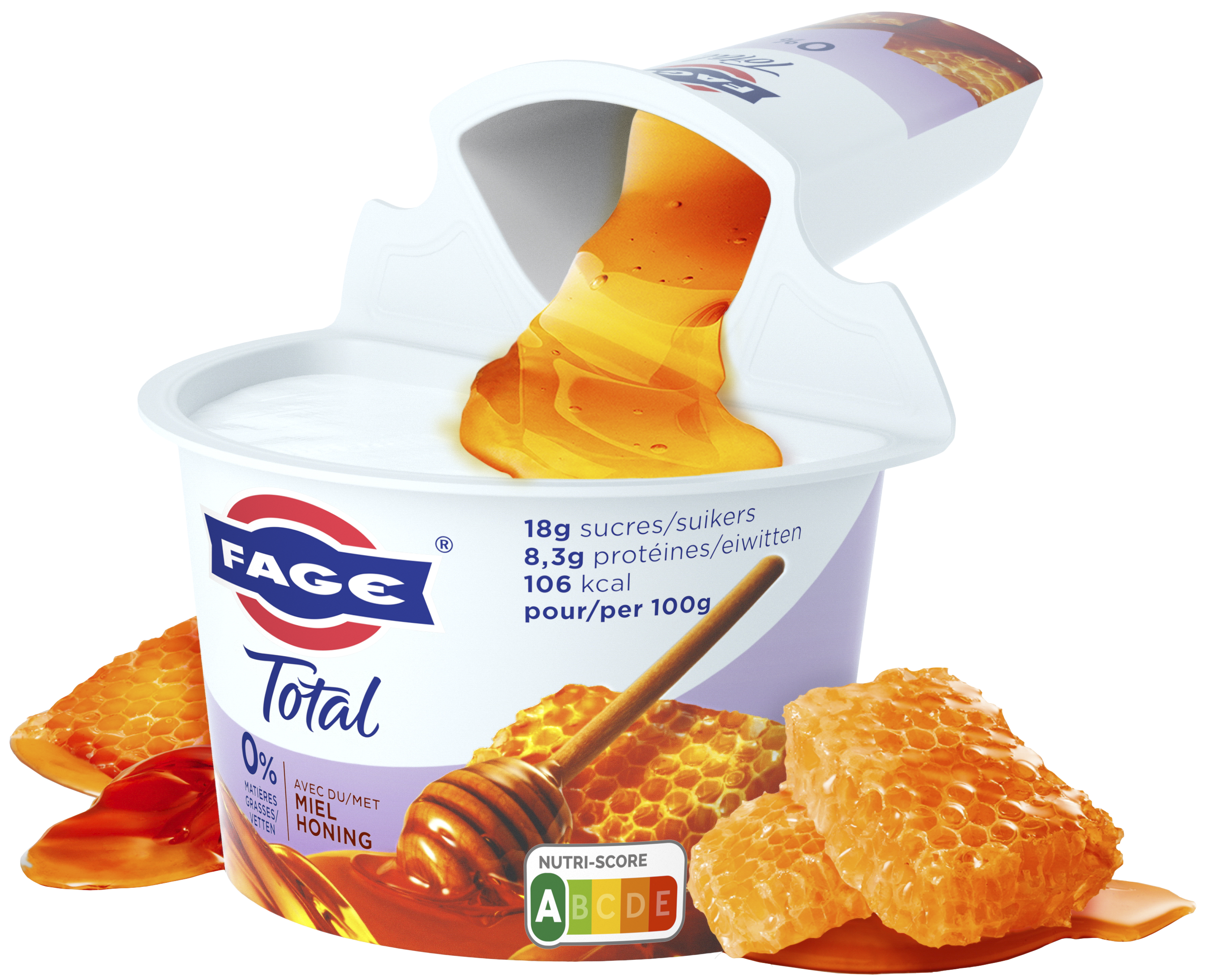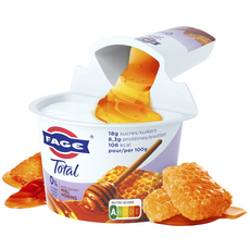 Ingrédients: Yaourt égoutté (80%) (LAIT écrémé, ferments LACTIQUES), miel (20%) (mélange de miels originaires de l'UE).