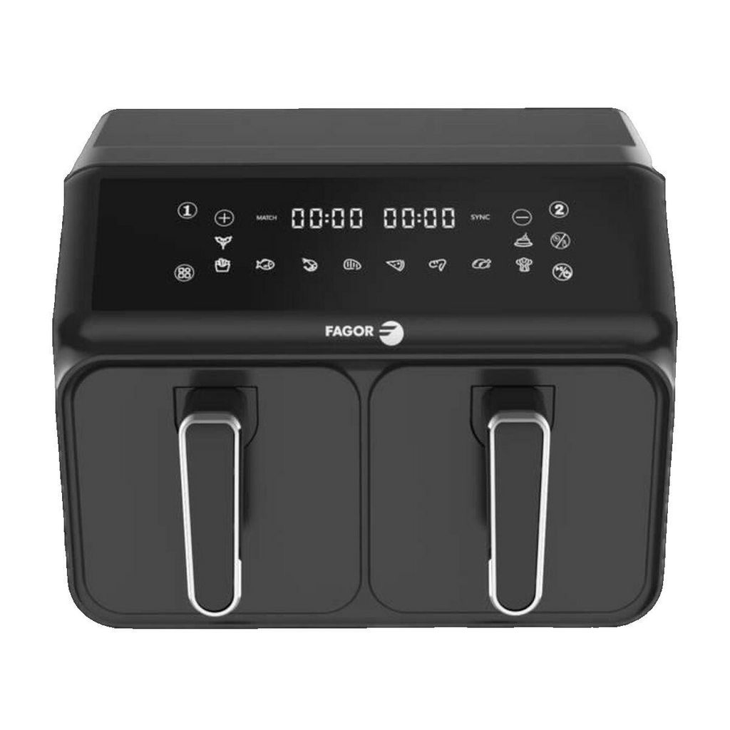 Découvrez la friteuse sans huile Fagor FG2X4L, équipée de deux cuves de 4L chacune pour une capacité totale de 8L, idéale pour préparer des repas sains et généreux pour toute la famille. Avec une puissance de 2200W, 8 programmes de cuisson et une plage de température de 60° à 200°, elle permet de cuire, frire, rôtir, griller et maintenir les aliments au chaud. Facile à nettoyer grâce à ses cuves compatibles lave-vaisselle, cette friteuse au design élégant et moderne est parfaite pour une cuisine rapide, efficace et savoureuse.