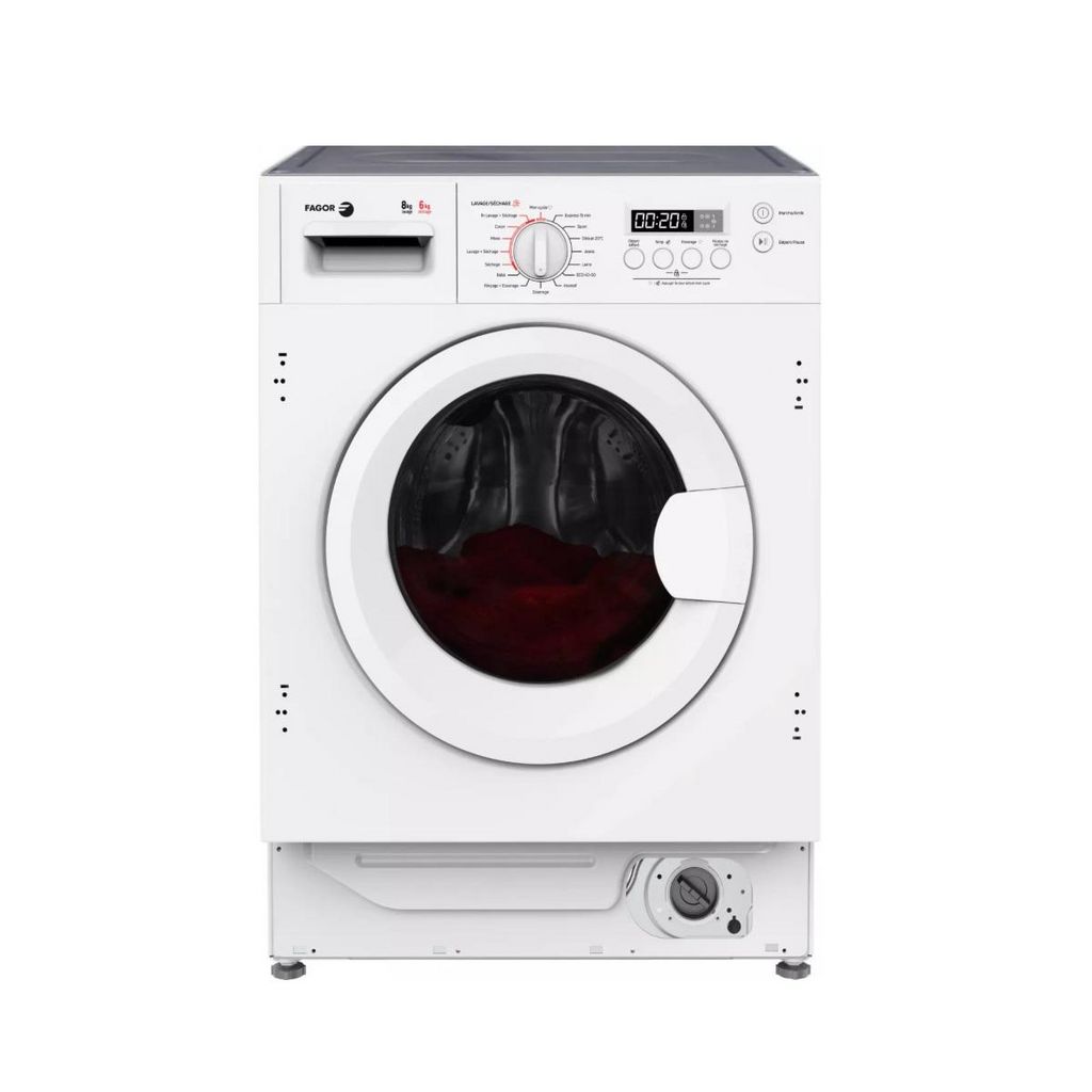 Fagor FLSI8614BW Lave-linge séchant FLSI8614BW de Fagor. - Type de produit : Lave-linge séchant intégrable.Fonction séchage : Oui.Capacité de lavage (kg) : 8.Capacité de séchage (kg) : 6.Classe d'efficacité énergétique : E.Classe d'efficacité de lavage/séchage : E.Vitesse d'essorage (trs/min) : 1400